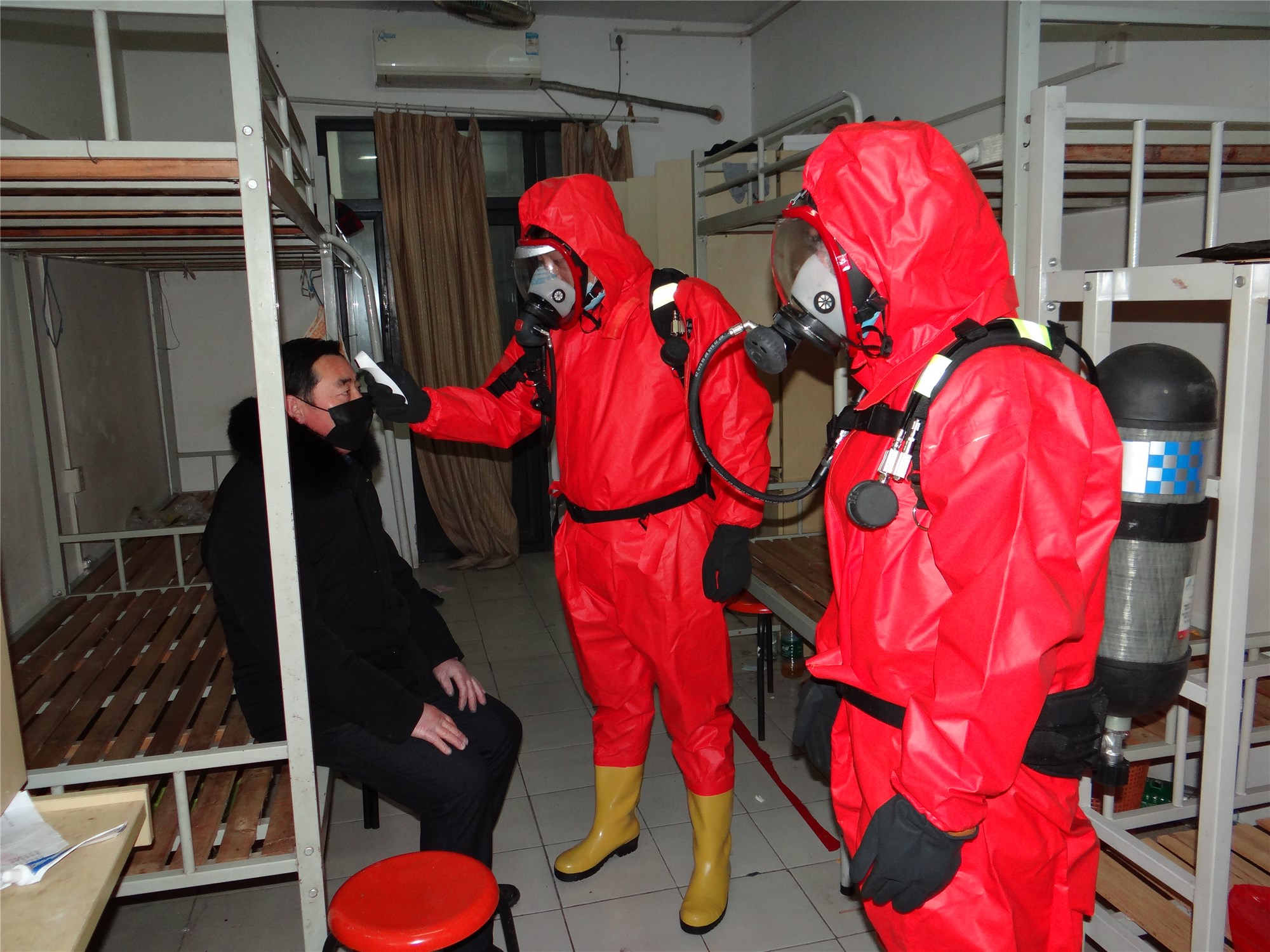 本次演練主要模擬一位5天前從徐州回到園區(qū)公舍的35歲男性患者,因發(fā)熱、咳嗽、咽痛、頭痛現(xiàn)象開始進(jìn)行演練,應(yīng)急小組迅速拉起警戒、轉(zhuǎn)移、指定區(qū)域隔離、消毒,并匯報(bào)相關(guān)部門,按照實(shí)戰(zhàn)應(yīng)急響應(yīng)標(biāo)準(zhǔn),統(tǒng)一領(lǐng)導(dǎo)指揮,工作人員加強(qiáng)個(gè)人防護(hù),演練過(guò)程緊張有序,細(xì)致謹(jǐn)慎,整場(chǎng)新型冠狀病毒肺炎應(yīng)急演練活動(dòng)取得圓滿成功。