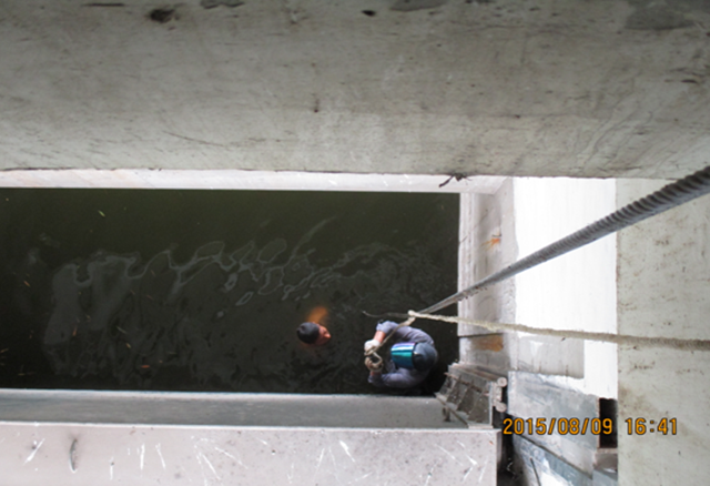 閘站維修人員克服水深的困難,潛水對鋼絲繩進行拆除、更換,進行調(diào)試,最終排除隱患,并對其它閘站的機電設(shè)備在次逐一排查,除銹加油,確保閘站汛期安全運行。